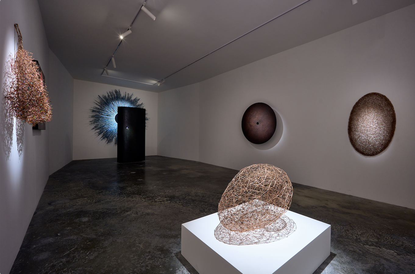 Be Takerng Pattanopas’s practice emerges from twin obsessions with space within and space without. His drawings, installations, paintings and sculptures explore the human body’s interior as such can be symbolized to suggest the infinity of the cosmos. This might be considered a distinctly 21 century preoccupation; the spirit of our time (Zeitgeist) as our world seems both smaller and bigger than ever.