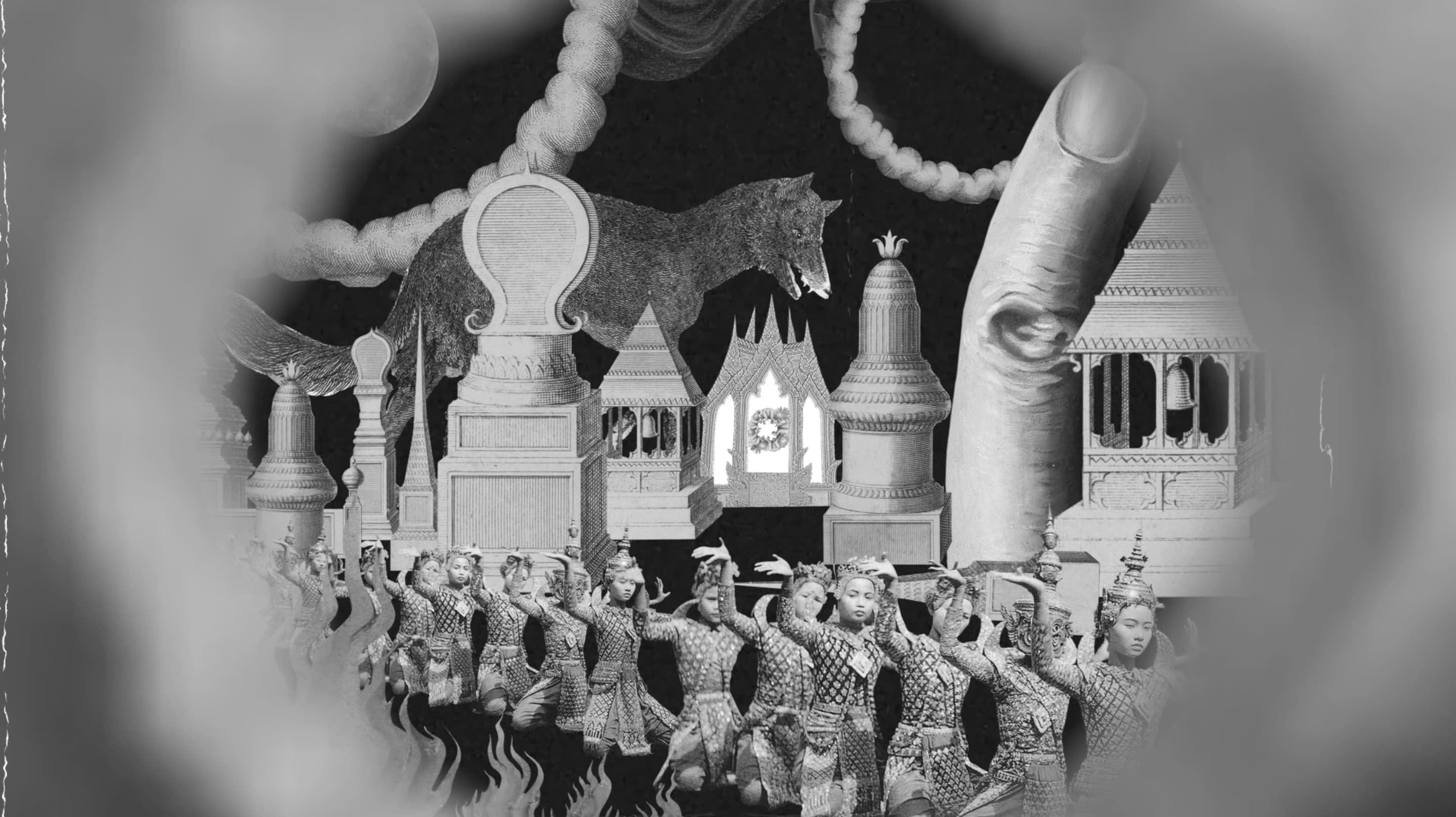 Nakrob Moonmanas is commonly recognised as a collage artist and illustrator in Thailand. The uniqueness in his work leads to endless interpretation. The Artist selects and seamlessly blends existing artworks with local and outlandish fragments of history and culture together yielding a magnificent composition with the touch of contemporary aesthetic. Having grown up amongst the life of old city Bangkok surrounded by bloody chaotic streets, hundreds year old golden temples, distasteful constructions and western style royal palaces, Moonmanas’s passion, personal interests, experiences embedded with floods of tales and myths and have been molded into his love-hate relationship with his own root.
