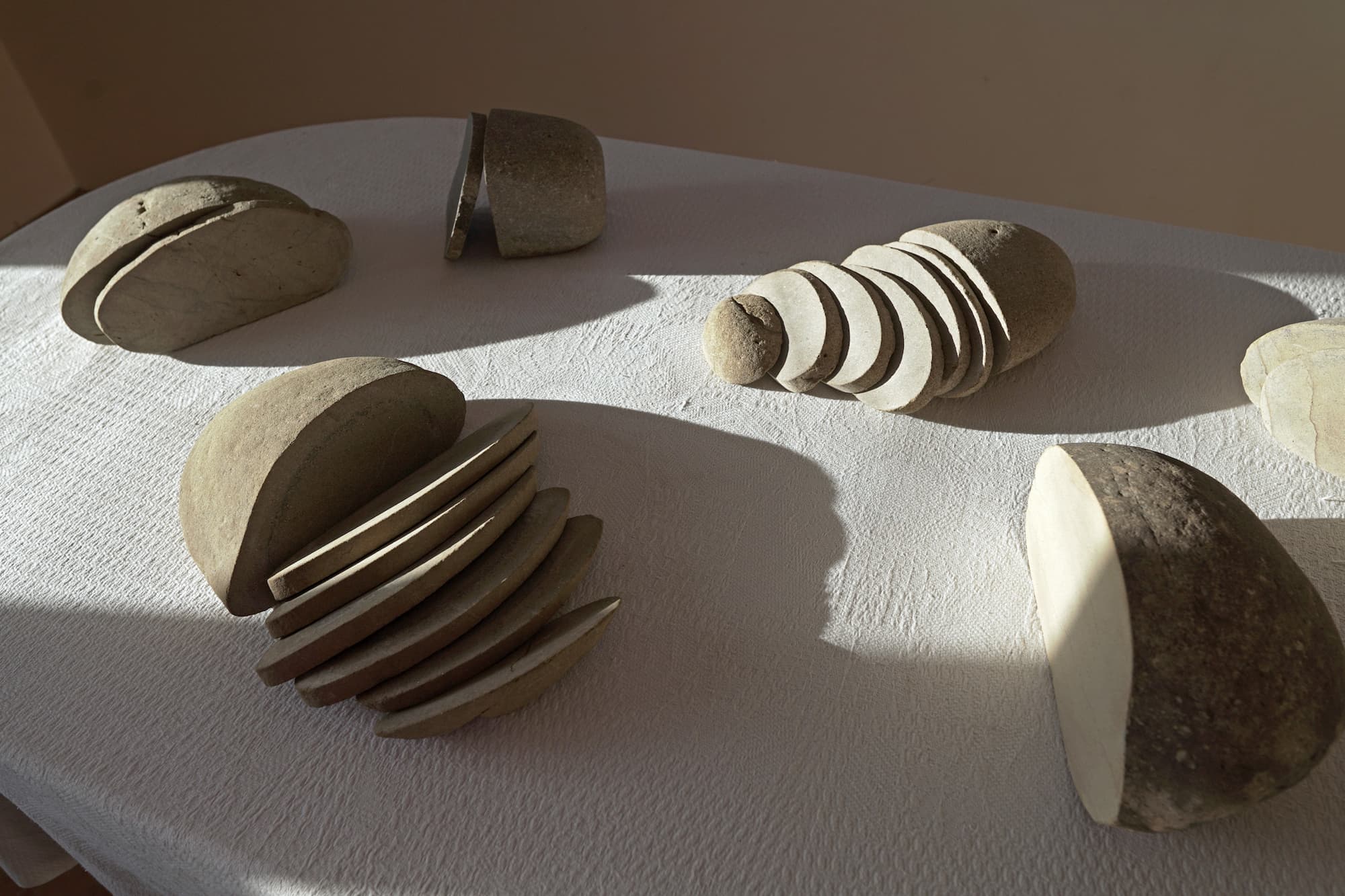 Kadyrova’s practice, tackling since its very beginning disciplines as different as sculpture, photo, video, performance, deeply focuses on the exhibition site and space. In her work, the issue of context unravels to reveal the rhythm of History on the move - that of a world whose multiple layers disappear behind their immediacy. Often diverting the aesthetic canons of the socialist ideal still present in the heritage of contemporary Ukraine, Kadyrova’s perspective is partially informed by the plastic and symbolic values of urban building materials. Thus, ceramics, glass, stone and concrete enter the spotlight of her work.