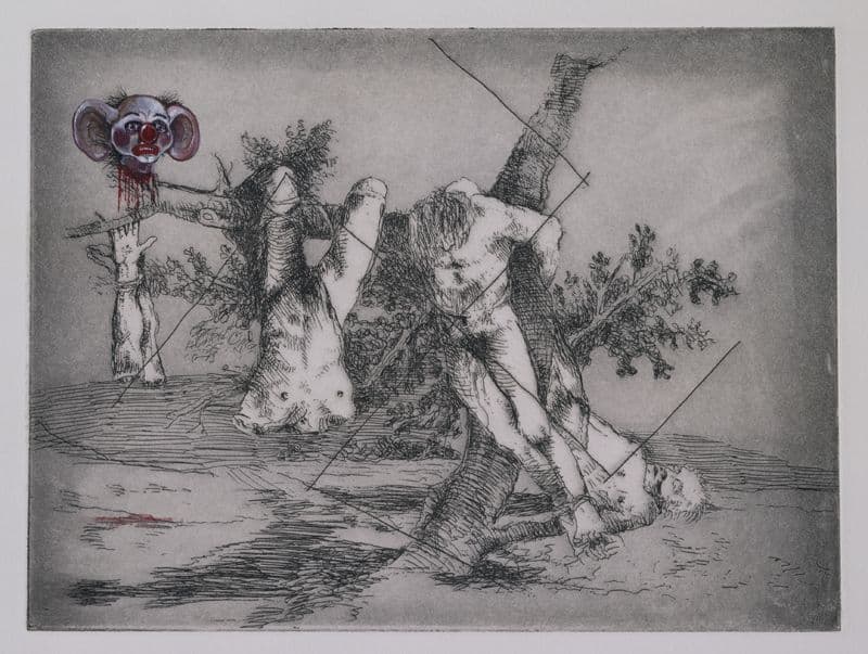 Jake and Dinos Chapman are sculptors, printmakers, and installation artists who worked together as a duo for over 30 years. Having graduated from the Royal College of Art in London in 1990, one of the brothers’ first works of notoriety was Disasters of War (1991), a sculpture comprised of reclaimed shop mannequins remodelled and painted to resemble one scene from the Francisco de Goya’s etchings of the same name. Their fourth edition of the work, Disaster of War IV (2001), which sources and subverts the entire series of Goya’s etchings is presented at BAB 2022.